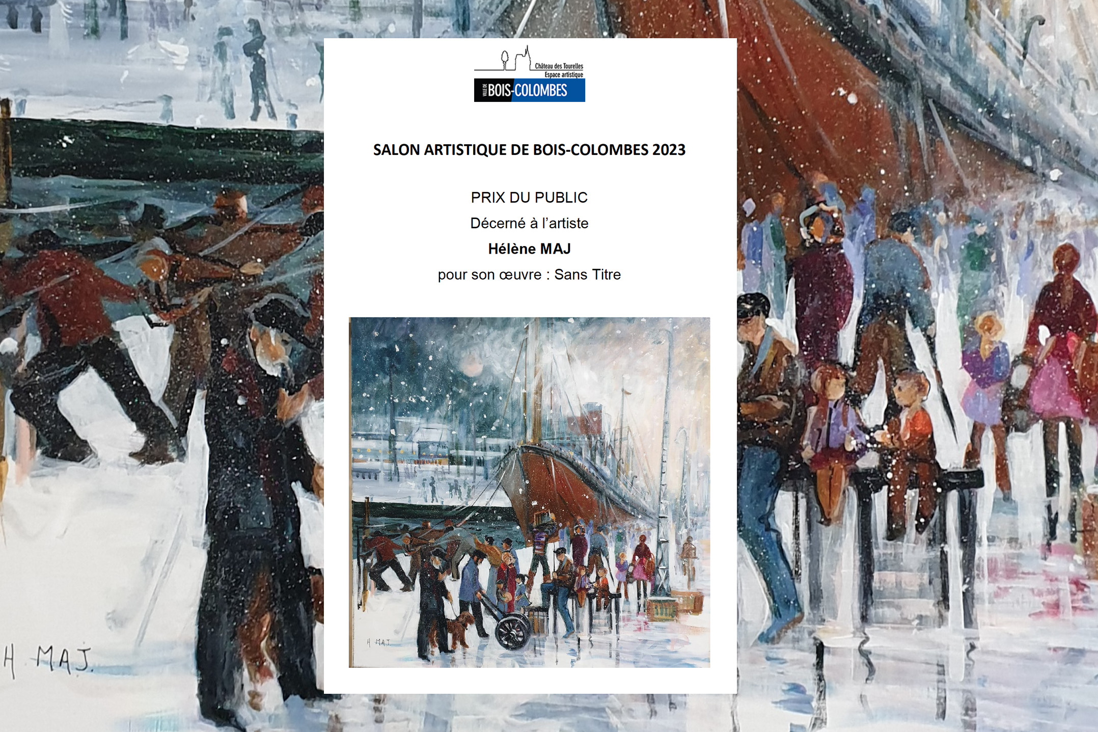 Après les prix décernés par le jury, c’est au tour des visiteurs de récompenser de leurs votes leur œuvre préférée. Cette année, c’est Hélène MAJ qui a remporté le prix du public.