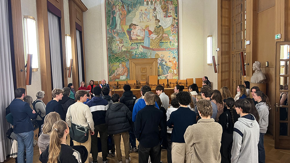 Mercredi 29 novembre 2023, le maire Yves Révillon et la maire adjointe en charge du jumelage Caroline Molin-Bertin ont accueilli à l’hôtel de ville les élèves suédois du lycée Blackeberg de Stockholm et les élèves de la classe de 1ère internationale du lycée Albert-Camus.