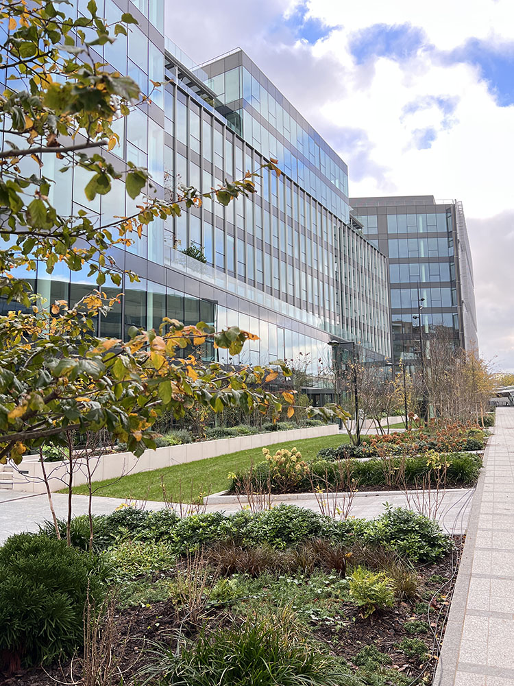 Au bas des immeubles de bureaux, l’allée des Messagerie, égayée d’un passage dessinant un clavier de piano, permet désormais de joindre la rue de Bois-Colombes et la rue Raoul-Nordling.